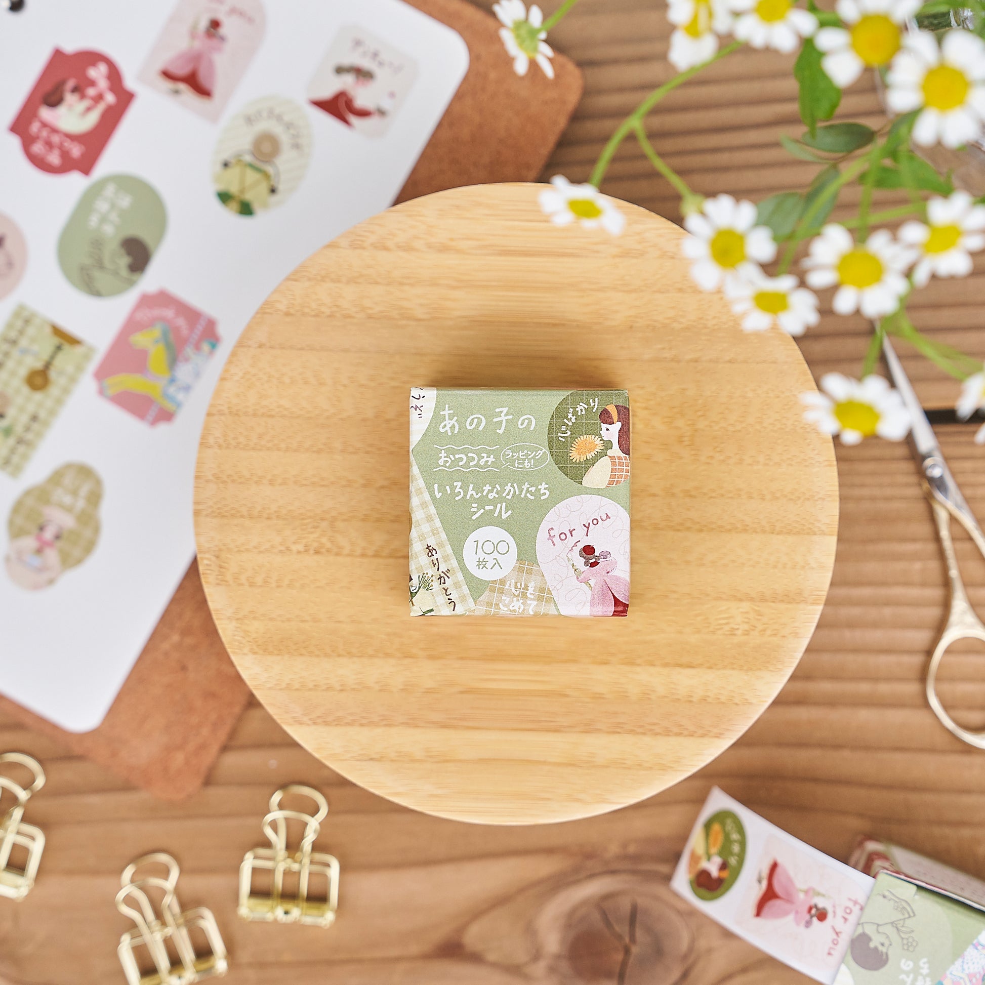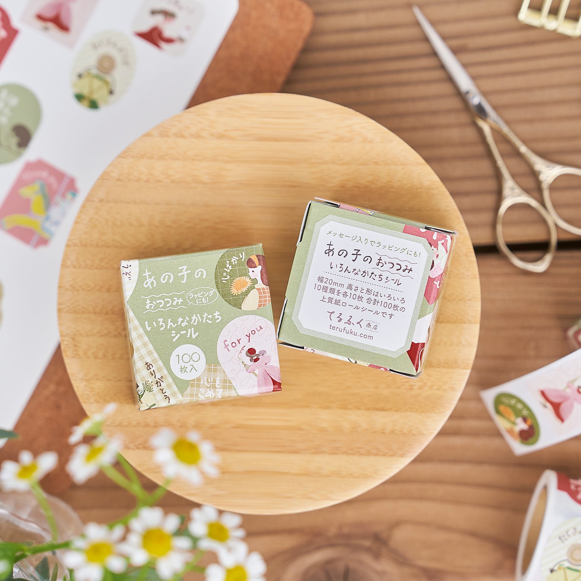 10種類のいろんな形のシールが100枚入ったロールシールです。