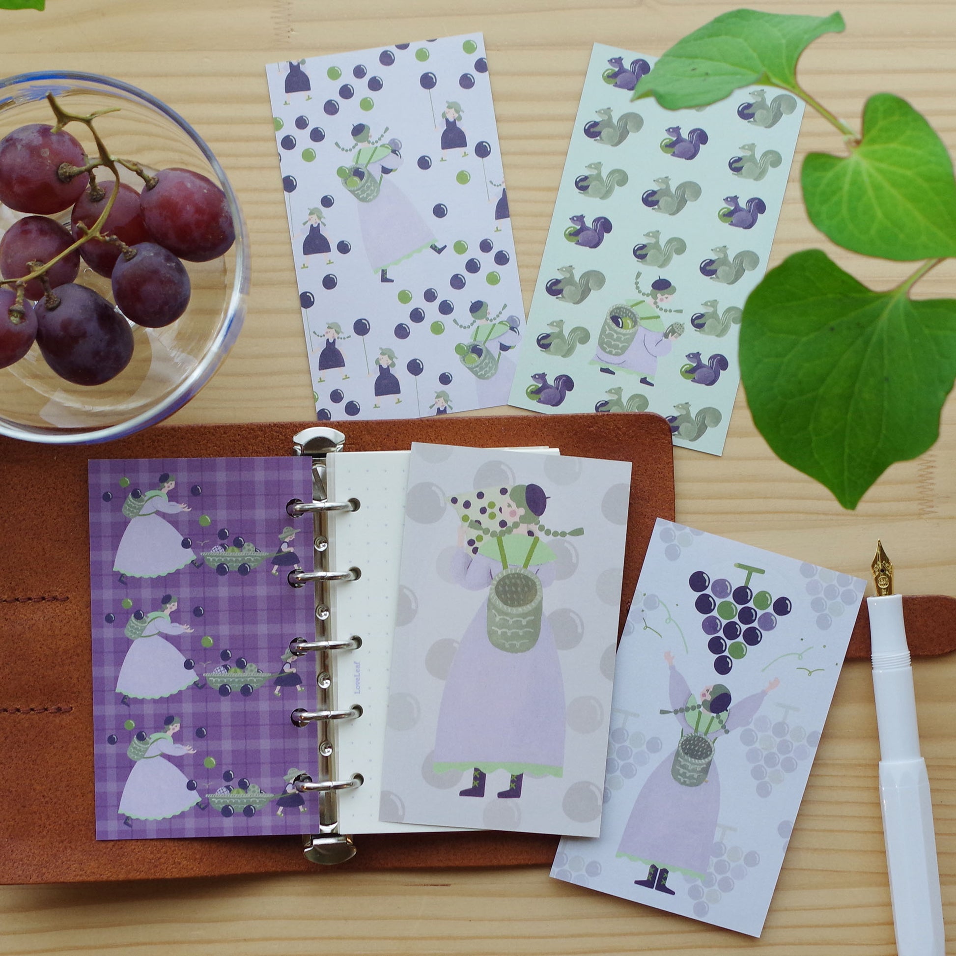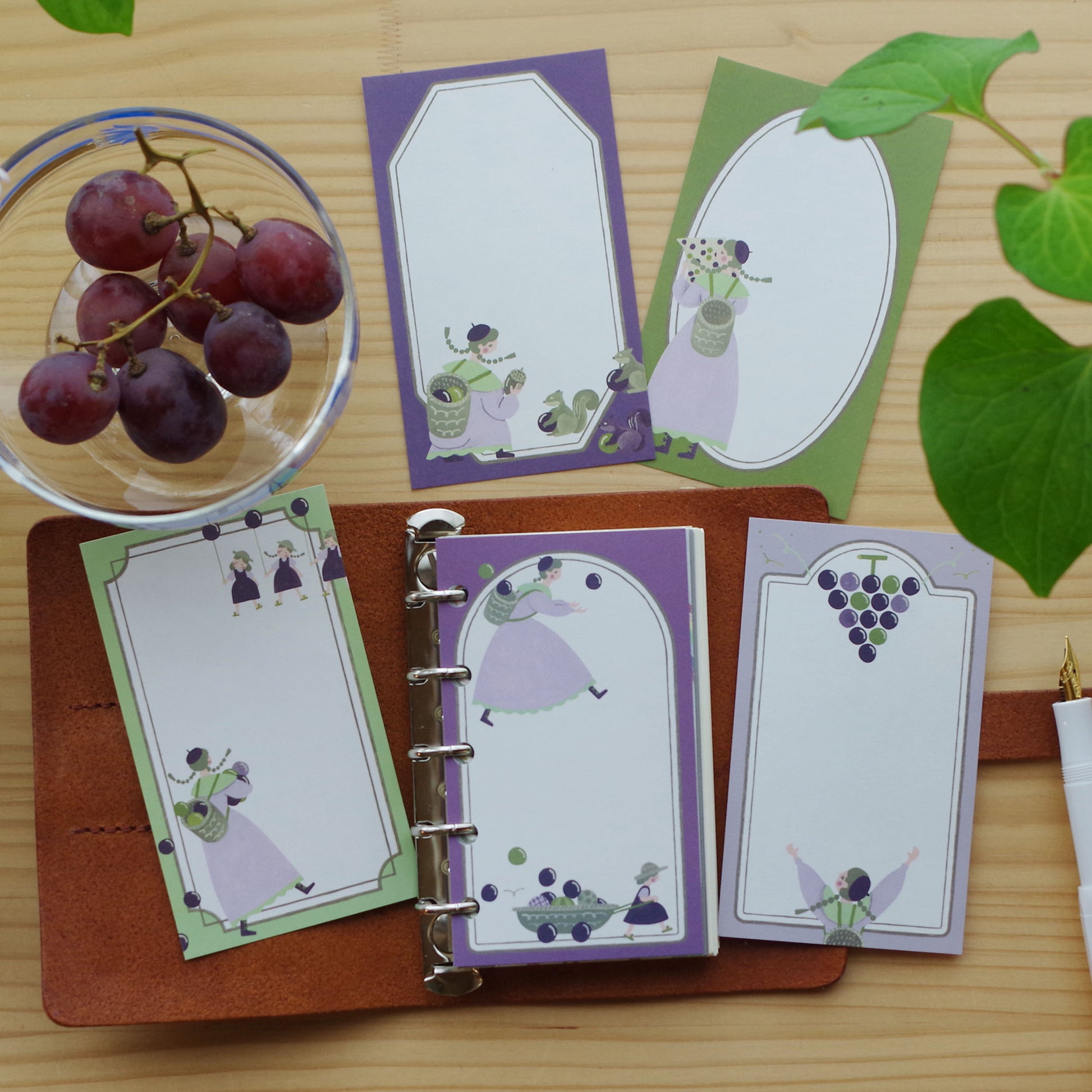 5種類のメモ紙をイラストとフレームでデザインしました。