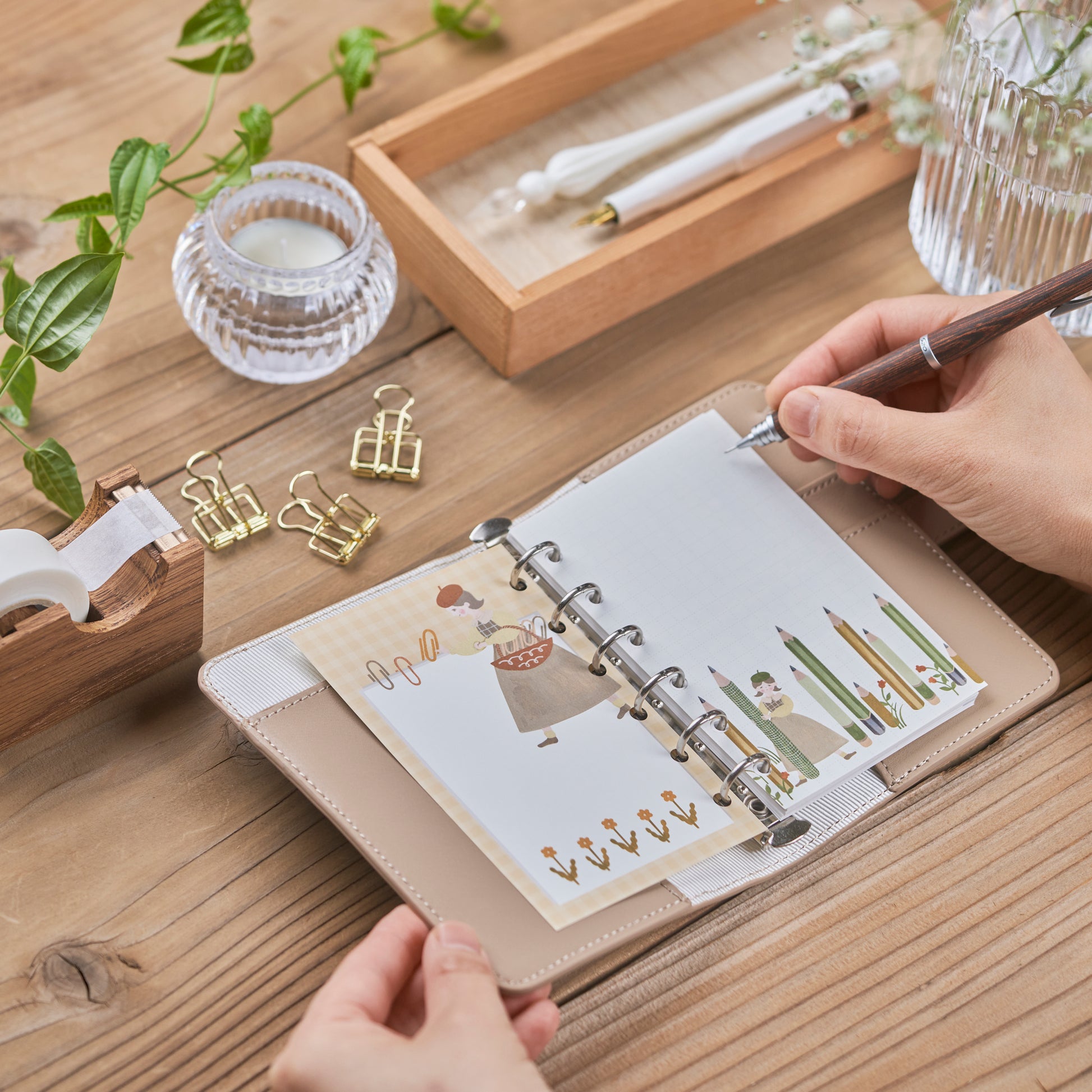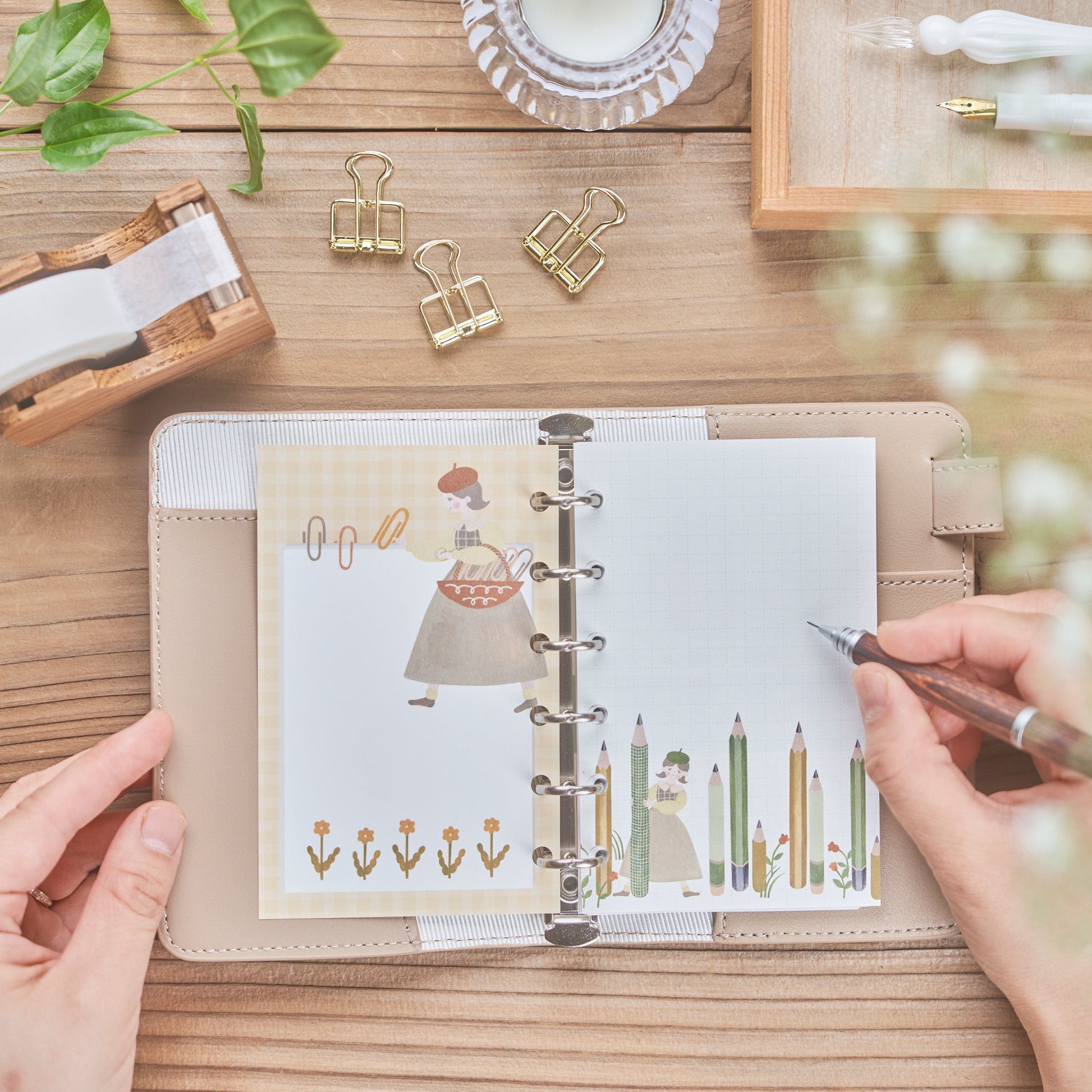 ミニ6手帳に入るサイズ感で、穴をあけていただくと手帳にも。
