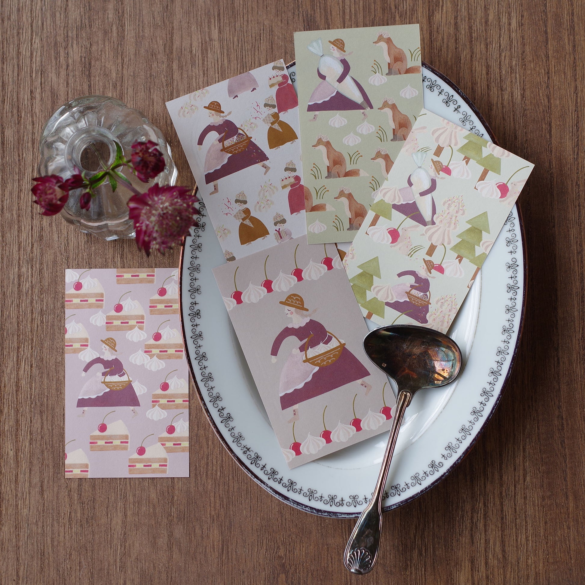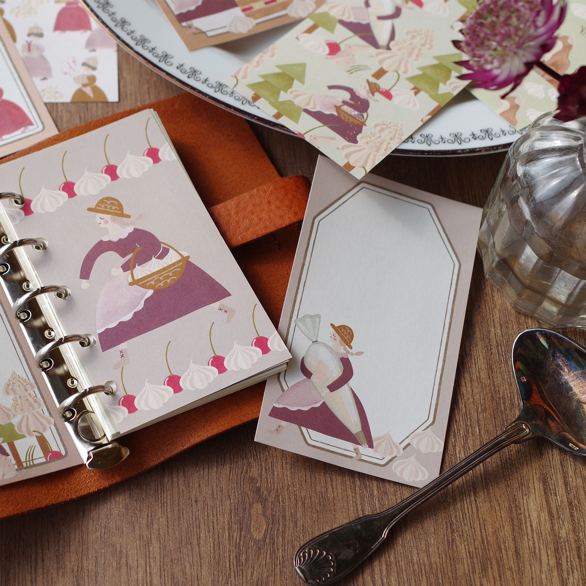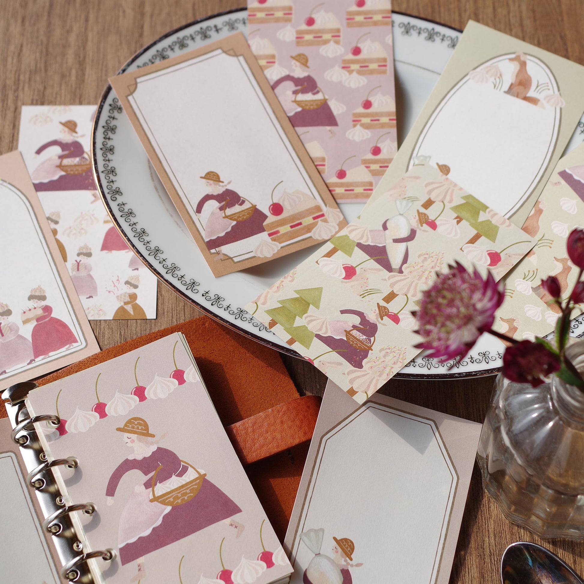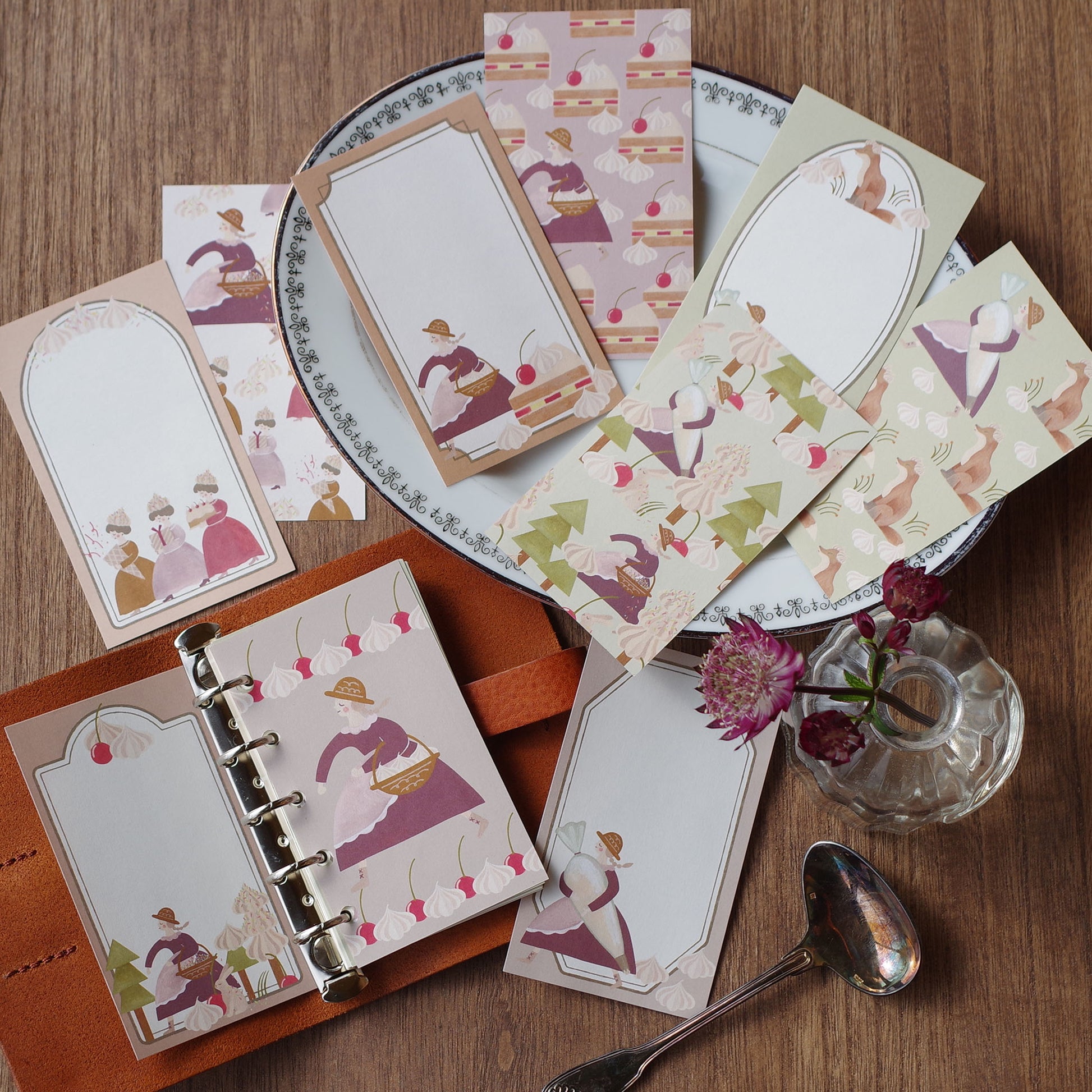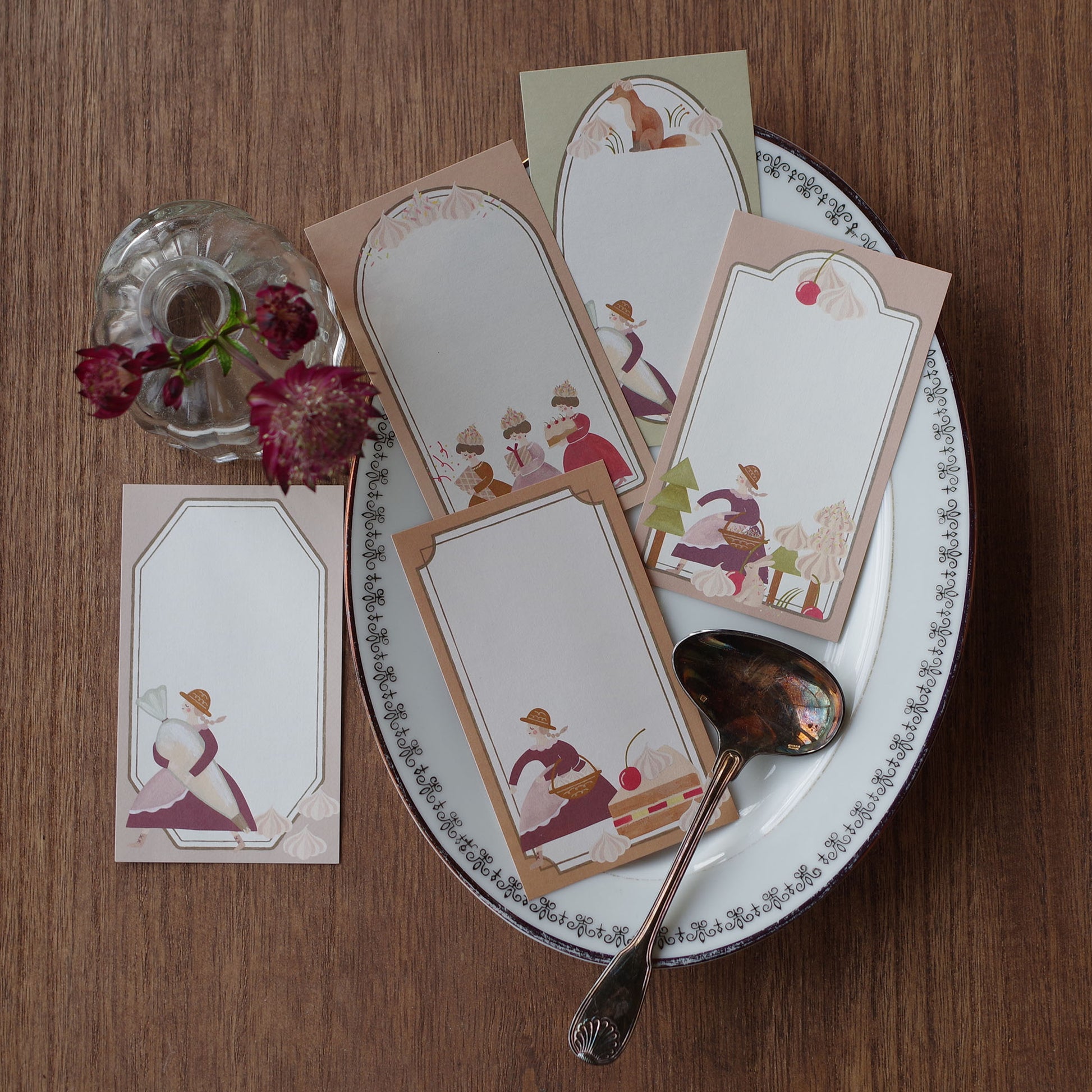 5種類のメモ紙をイラストとフレームでデザインしました。