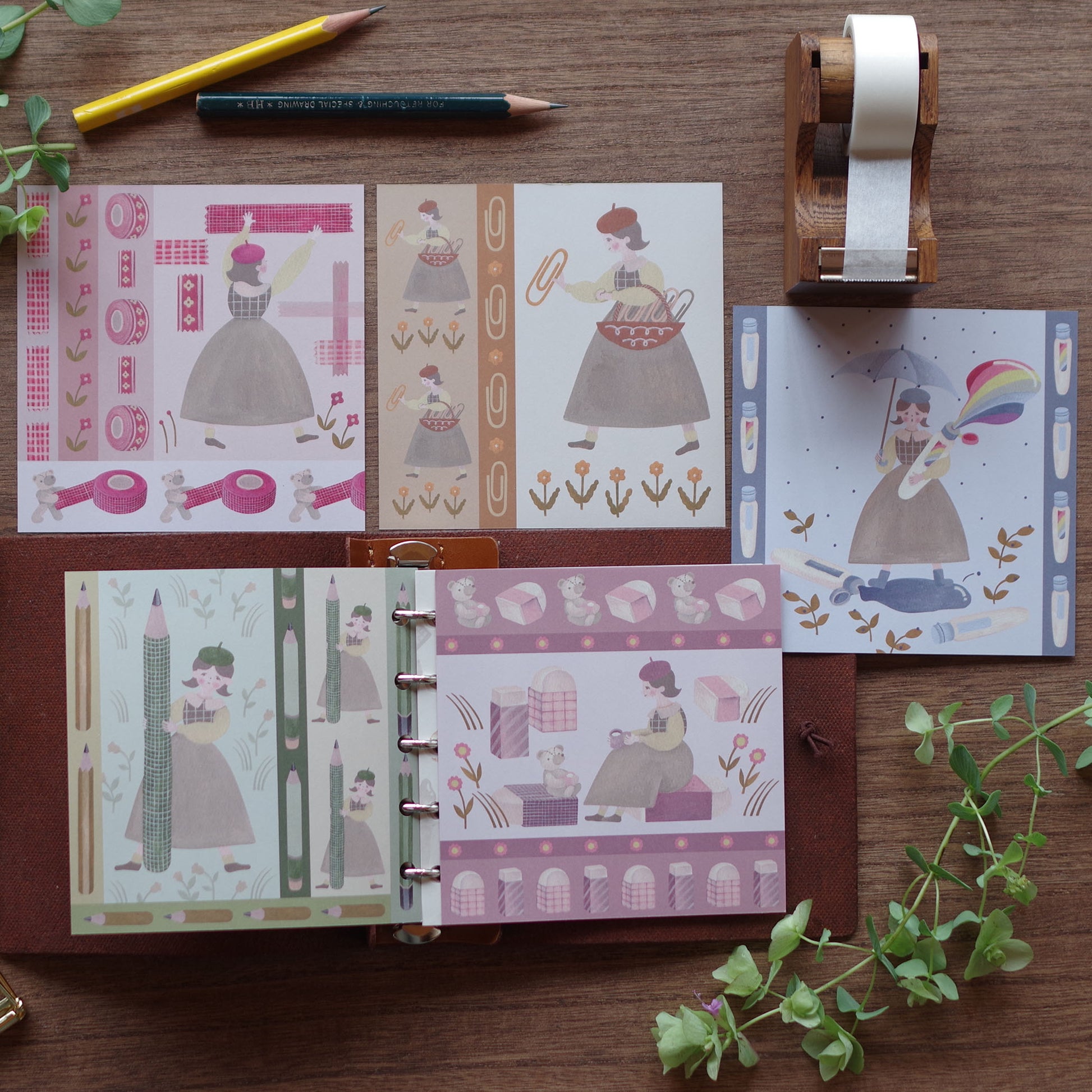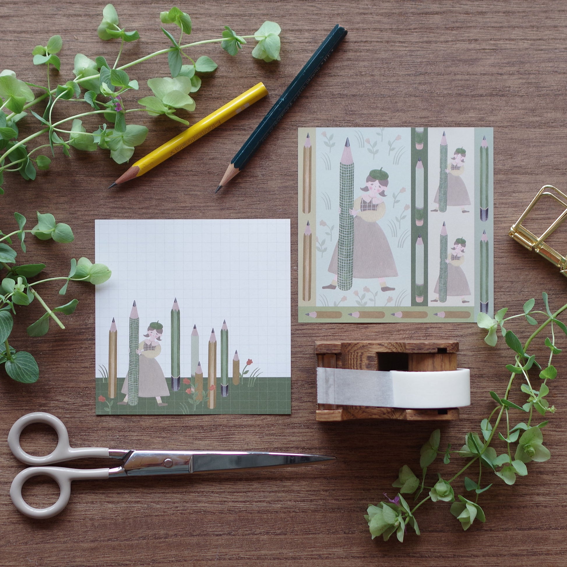 テーマ「文具」。今日も文具と楽しく過ごす女の子です。