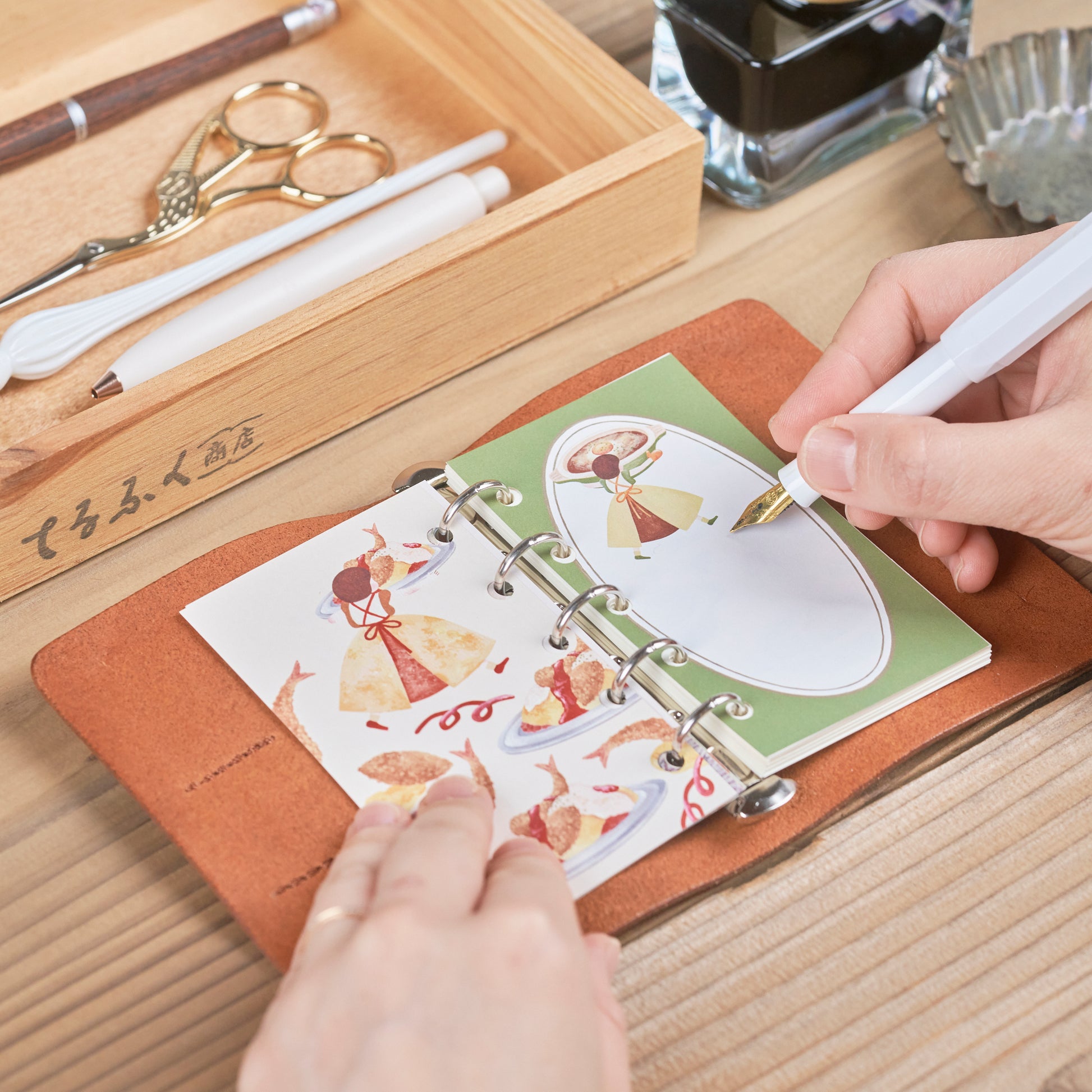 マイクロ5の手帳に入るサイズ感で、穴をあけていただくと手帳にもお使いいただけます。
