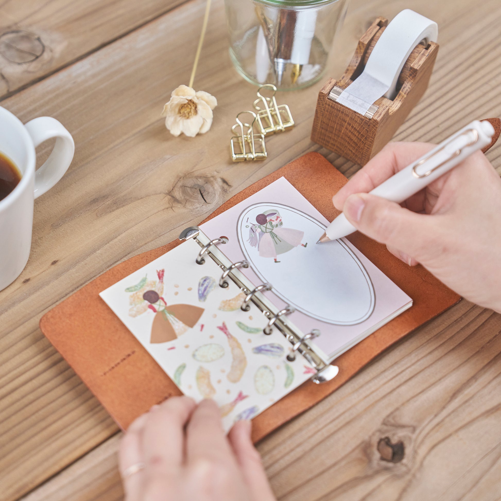 マイクロ5の手帳に入るサイズ感で、穴をあけていただくと手帳にもお使いいただけます。