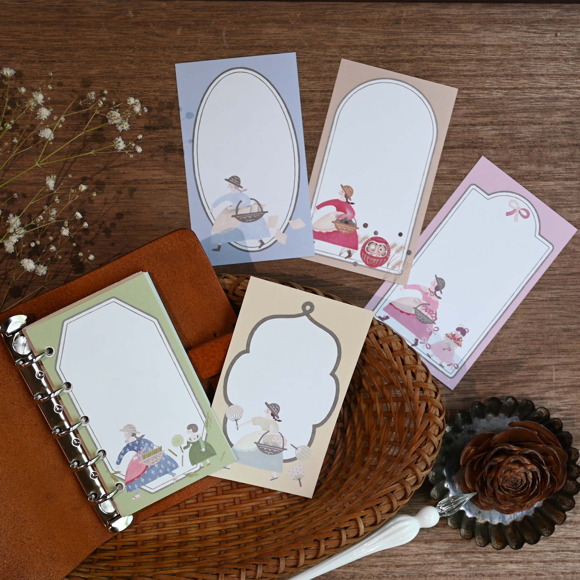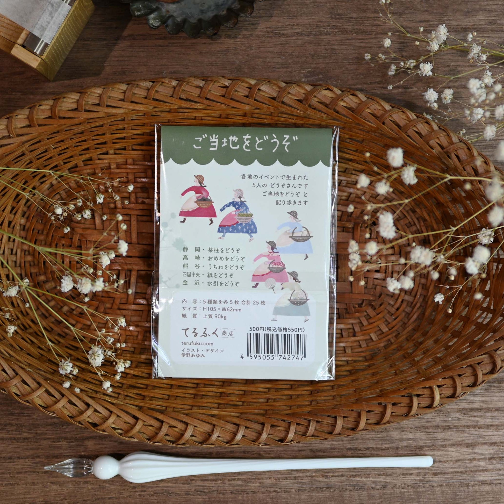 各地のイベントで生まれた5人の どうぞさん のちいさなメモ紙です。