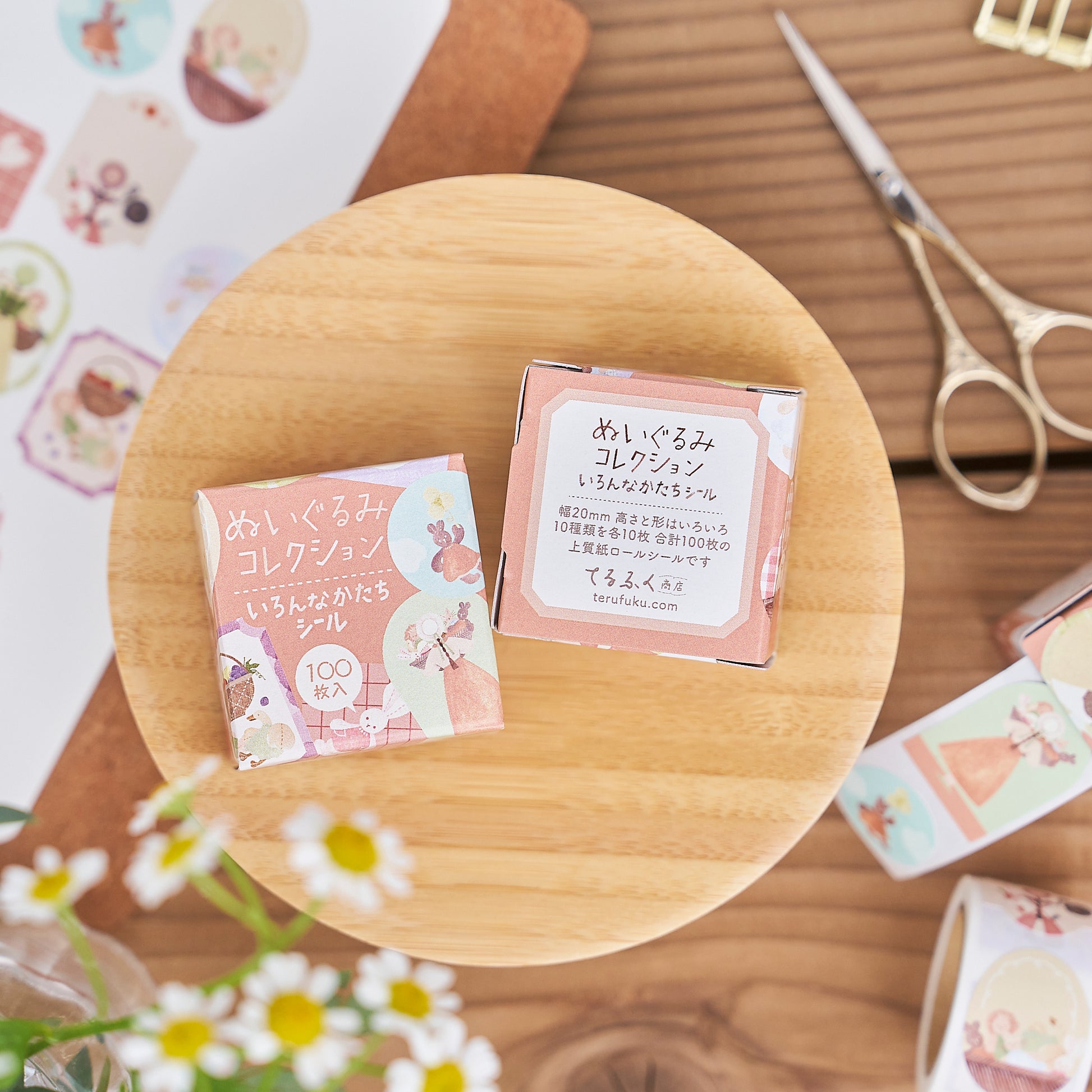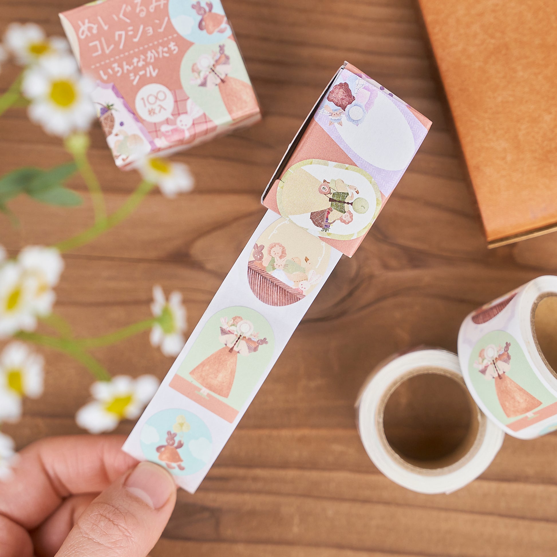 10種類のいろんな形のシールが100枚入ったロールシールです。
