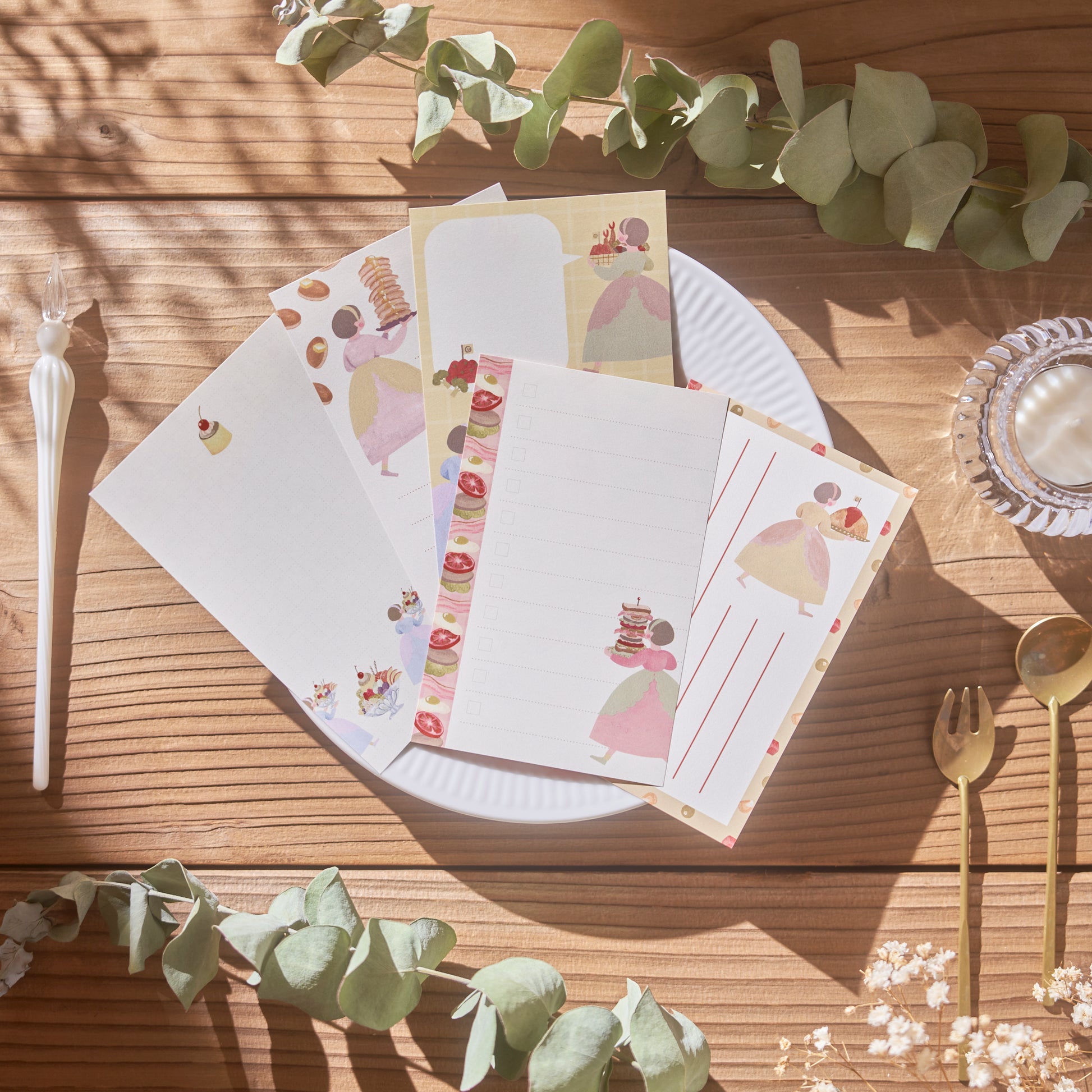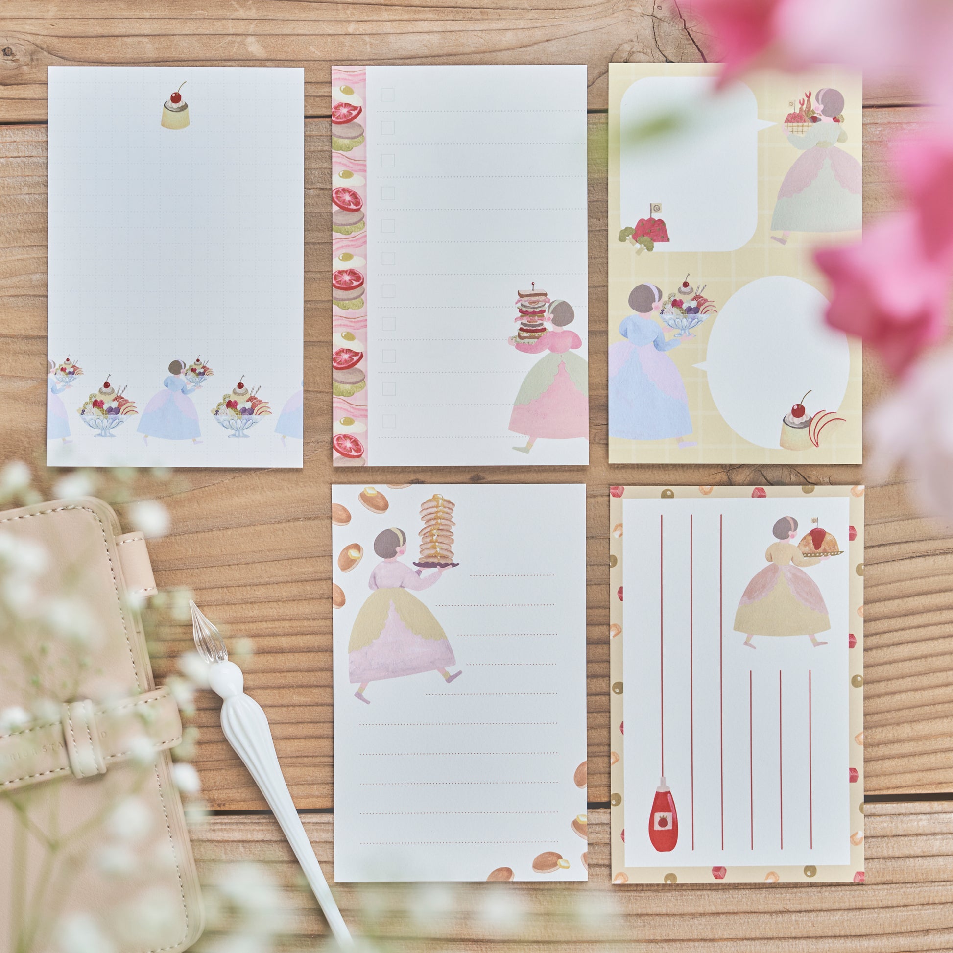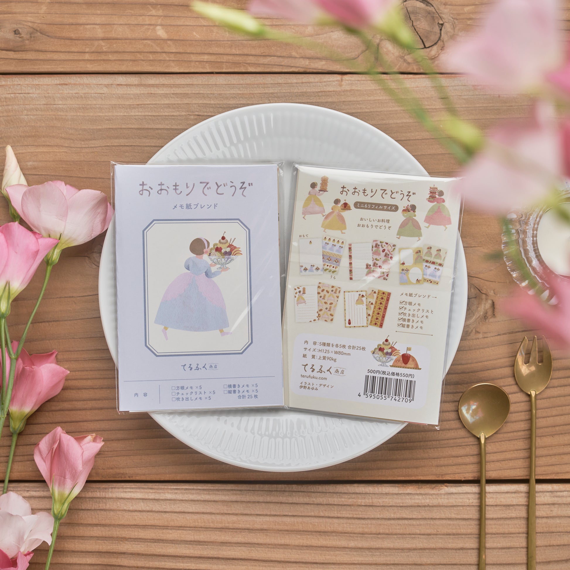 方眼メモ、チェックリスト、吹き出しメモ、横書きメモ、縦書きメモ、5種類の用途のメモ紙を詰め合わせました。