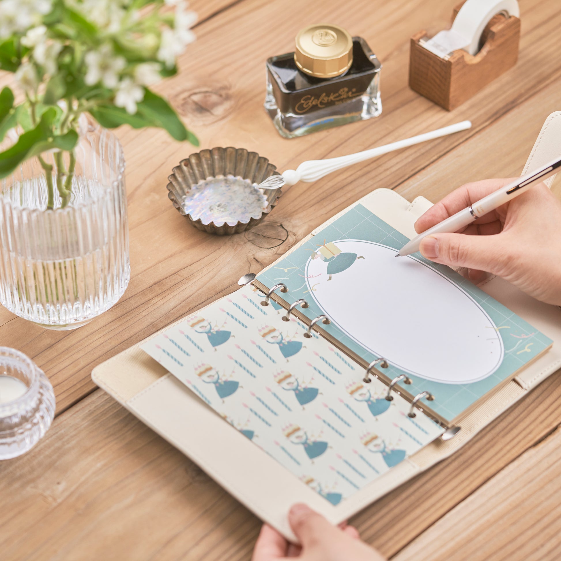 パーティーの準備をする女の子がバイブルサイズのメモ紙になりました。
