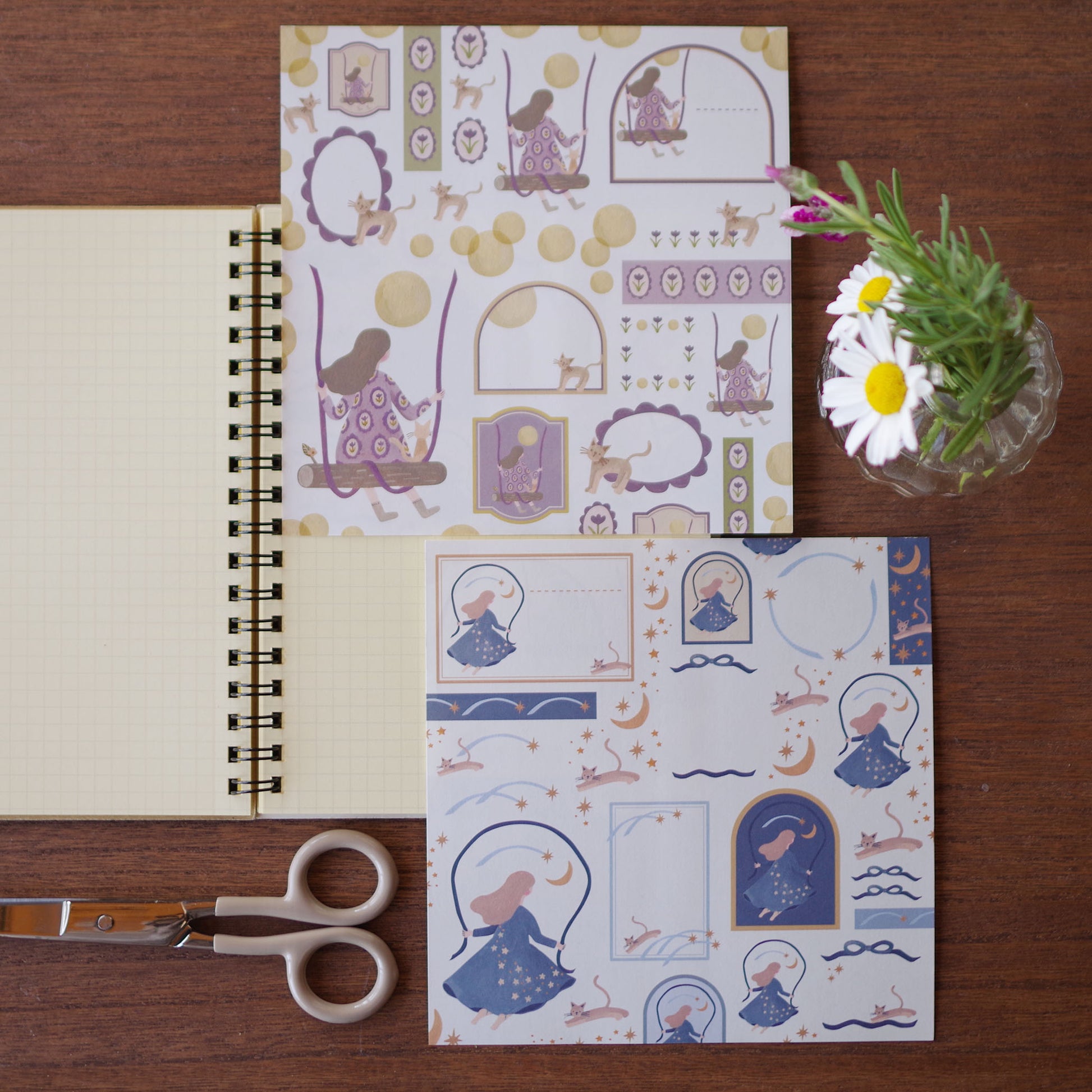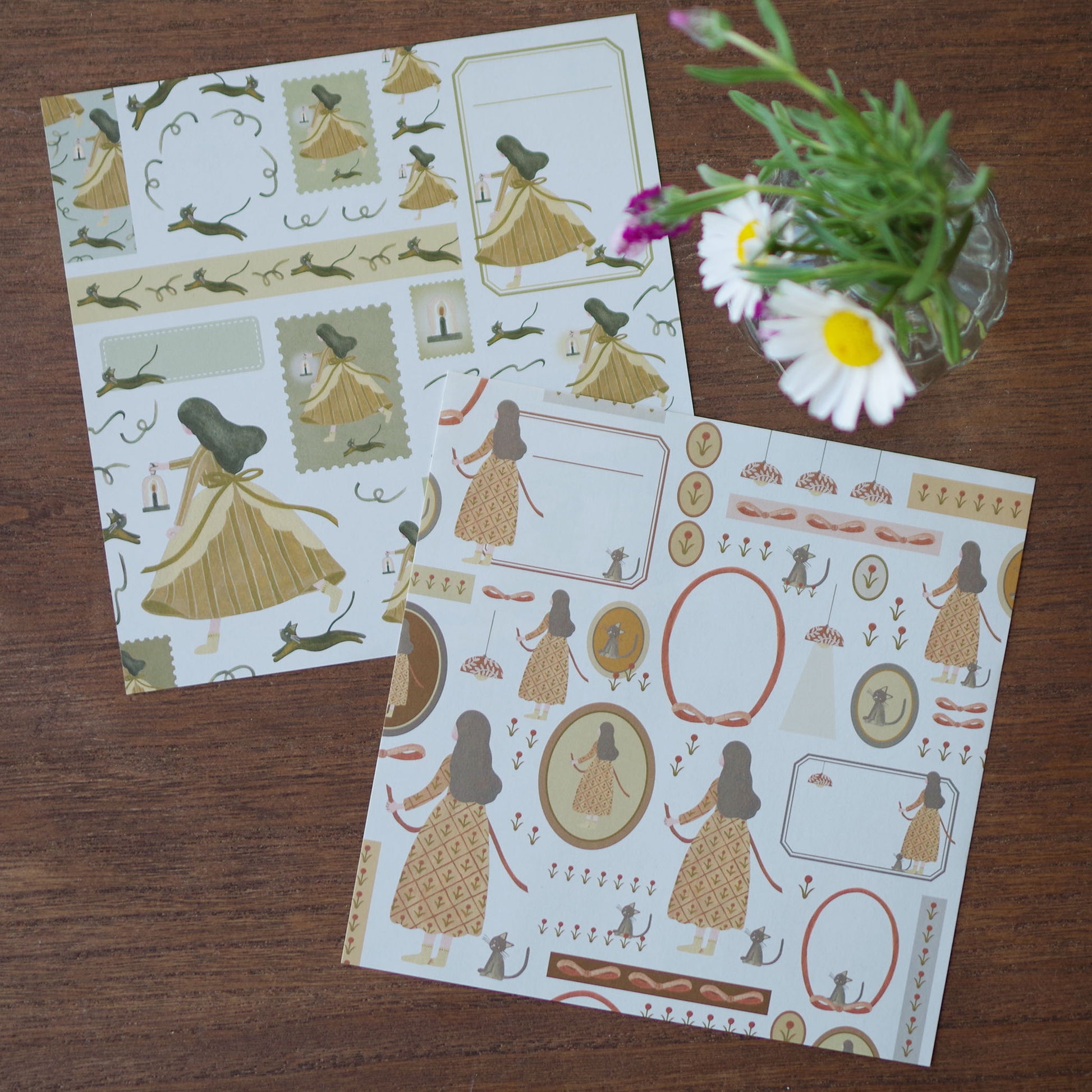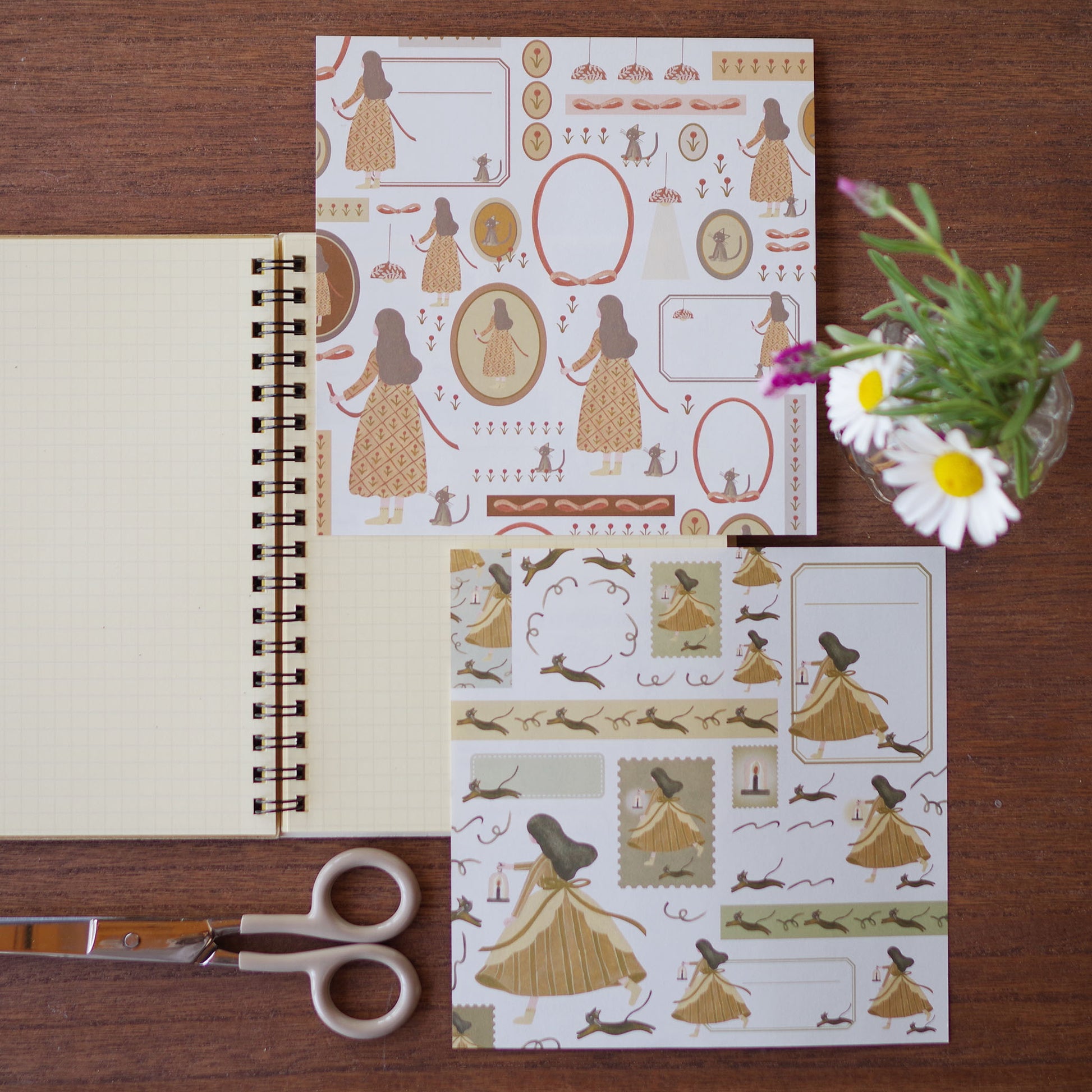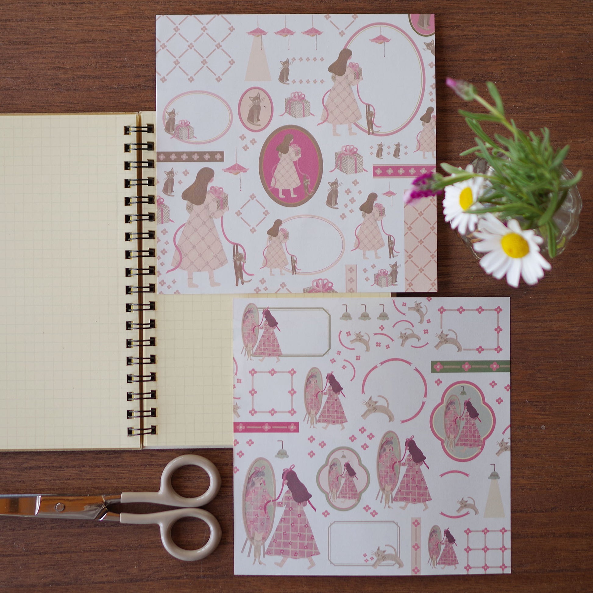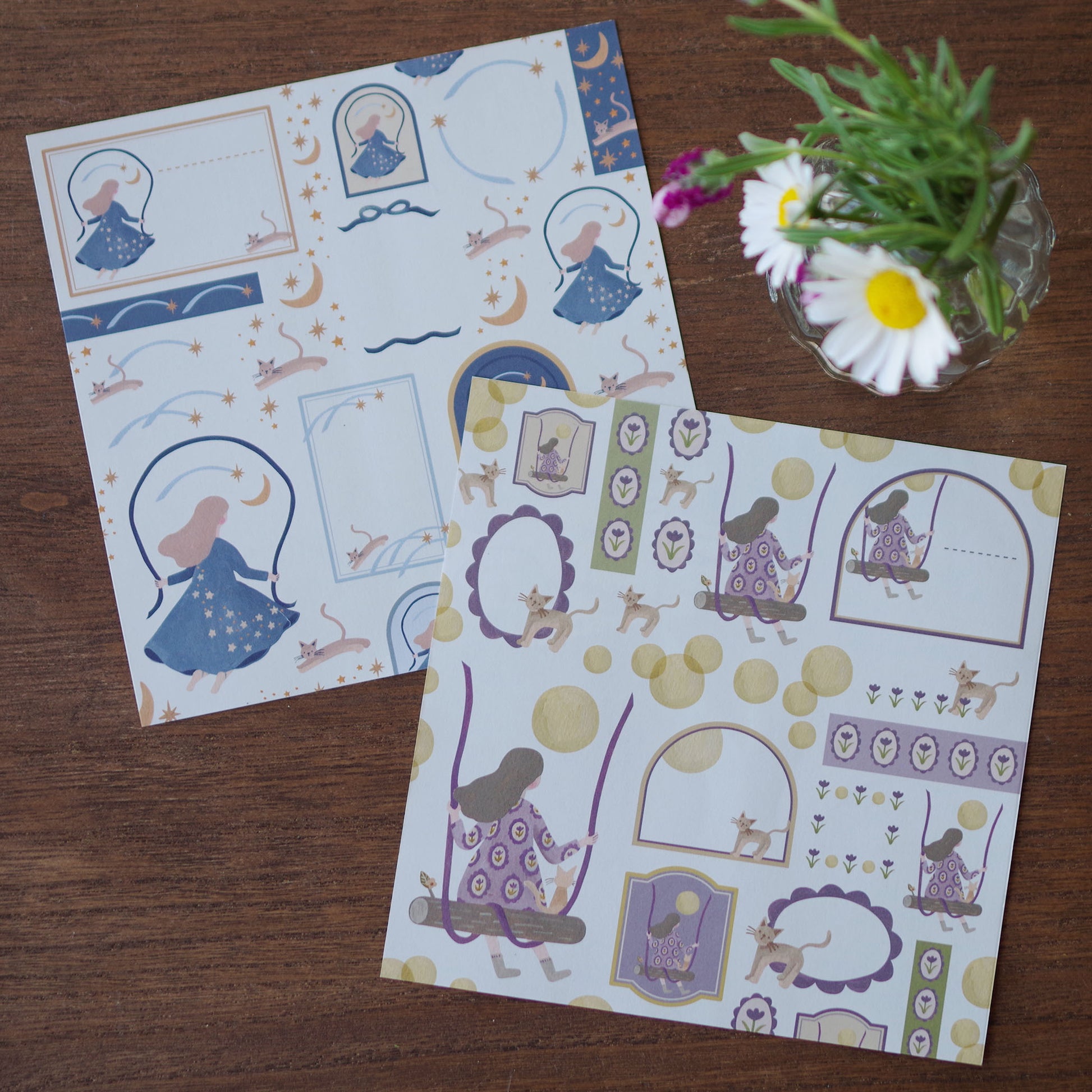 素材集のようにイラストをたくさん配置いたしましたので、はさみで切ってコラージュ素材としてもお使いいただけます。