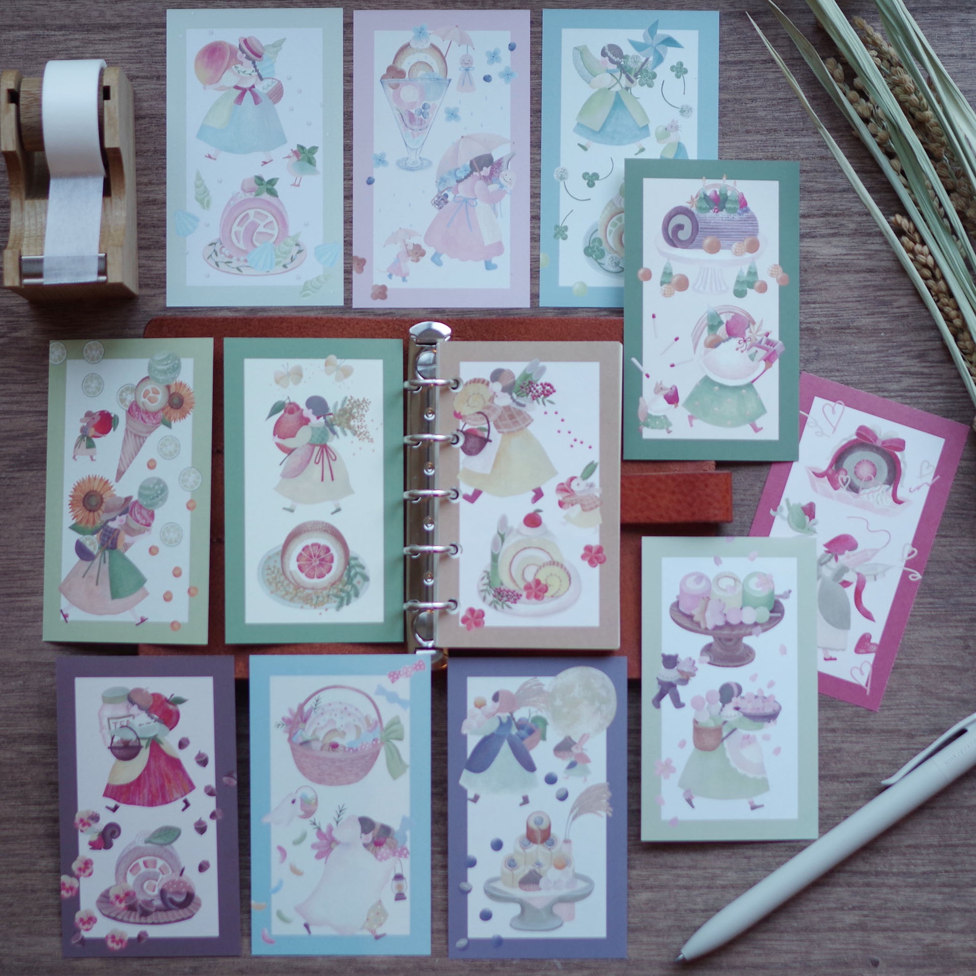 美味しいロールケーキを作るため、季節の材料を集めてまわる女の子を描きました。