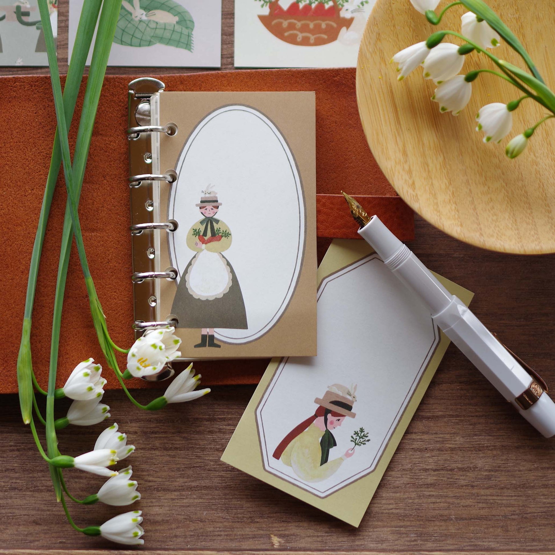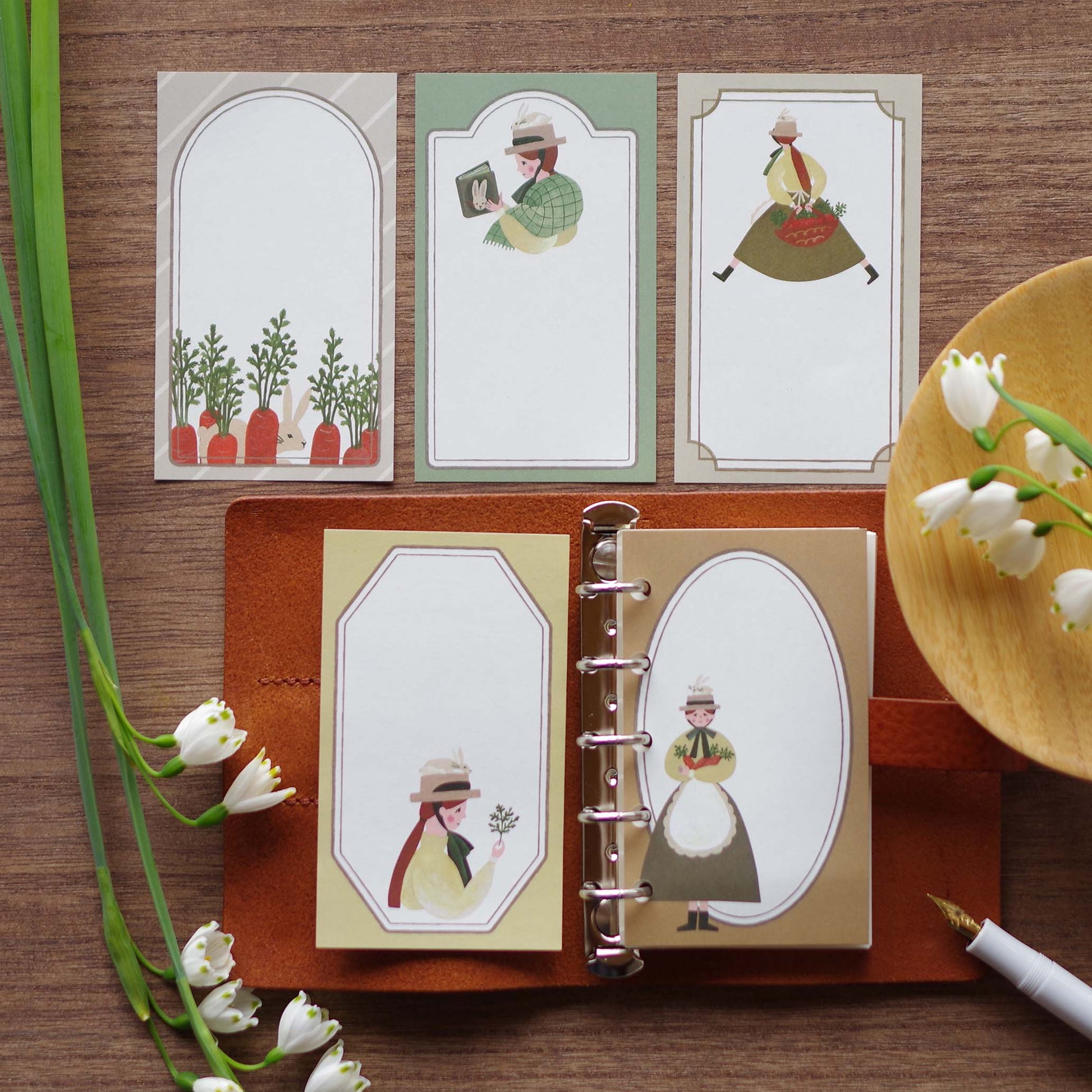 5種類のメモ紙をイラストとフレームでデザインしました。